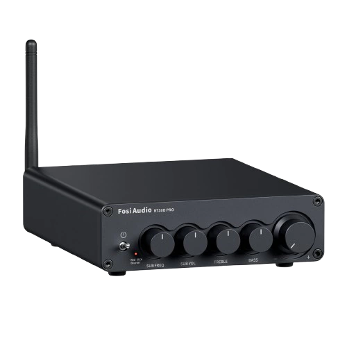 - Bass Beast: Ya seas gamer, cinéfilo o melómano, el amplificador de subwoofer proporciona graves nítidos, suaves y naturales. Cuenta con dos perillas dedicadas para el control del subwoofer: la perilla SUB FREQ permite un ajuste preciso de la frecuencia de los subwoofers pasivos de 0 a 300 Hz, mientras que la perilla SUB VOL permite ajustar el volumen deseado. Esto te da control total sobre la salida de graves para adaptarla a tus preferencias y al entorno de escucha.