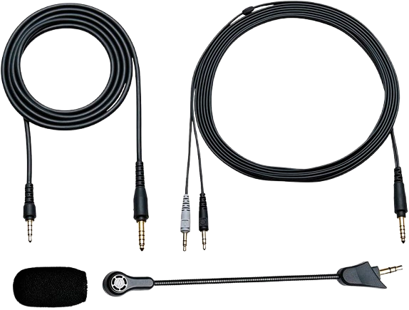 Detachable cable (1.2 m (3.9’)/3.5 mm (1/8”) gold-plated stereo mini-plug/4 pole); Detachable cable for PC (3.0 m (9.8’)/3.5 mm (1/8”) gold-plated stereo mini-plug/3 pole x2)