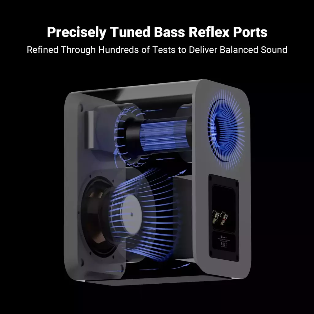 - Graves mejorados con diseño de puerto trasero: Equipados con un tubo bass reflex ABS con puerto trasero, los altavoces de estudio reducen la atenuación de baja frecuencia, proporcionando graves profundos e impactantes y un rango dinámico extendido para una experiencia auditiva más rica.