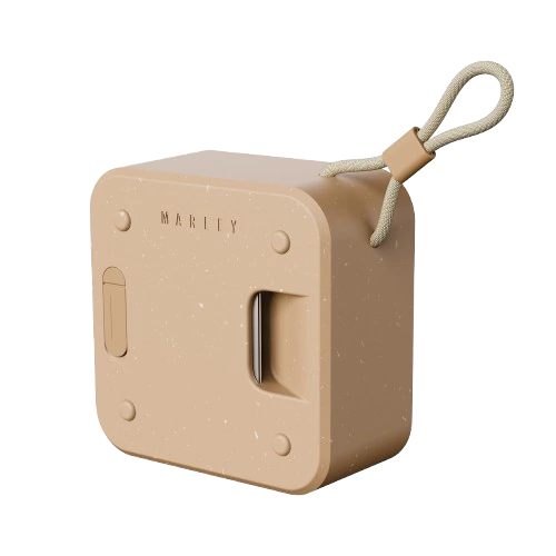 Diseñado de manera consciente con corcho y bambú, incorpora un abrebotellas integrado, una correa de transporte y la tela REWIND característica de Marley.